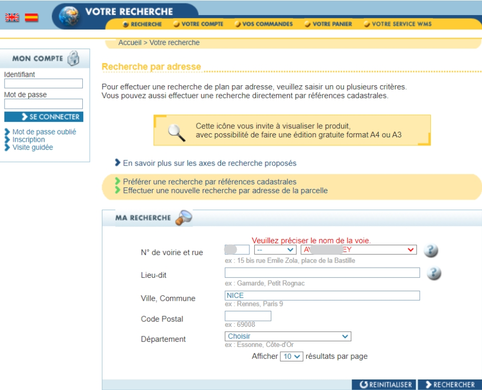 Для примера изучим ситуацию, когда вам известен адрес во Франции, но не известен владелец недвижимости. В такой ситуации вам понадобится кадастровый номер недвижимости. Чтобы его получить: