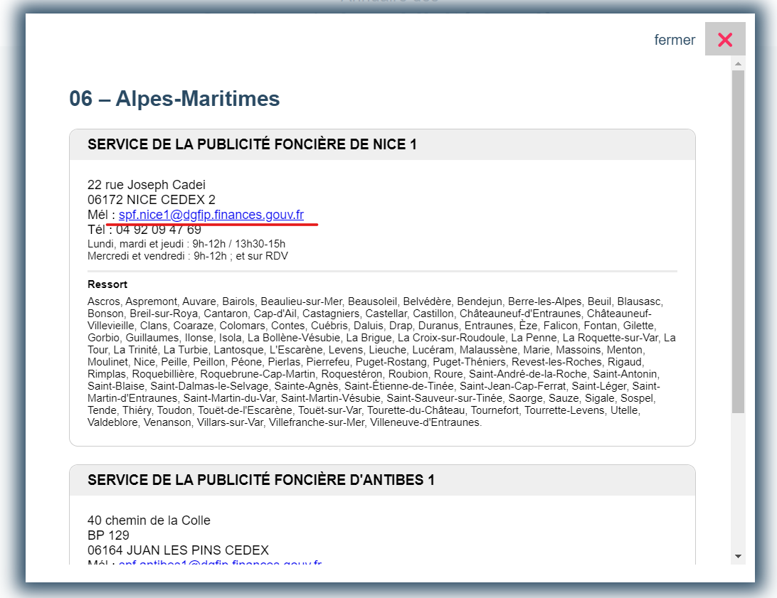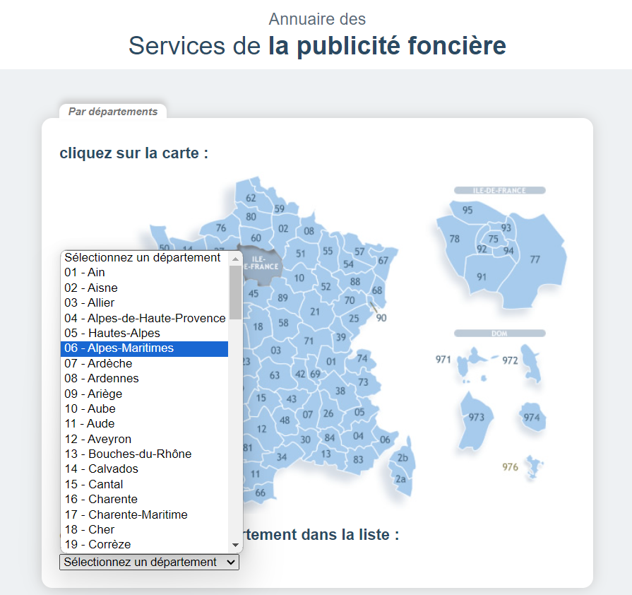 Теперь, когда форма у нас заполнена, нужно понять, куда ее отправлять, а также как оплатить услугу. Для этого нужно воспользоваться справочником по французским услугам, выбрав соответствующий департамент на виртуальной карте или из списка. Нас в данном случае интересуют Приморские Альпы, административным центром которых является Ницца.