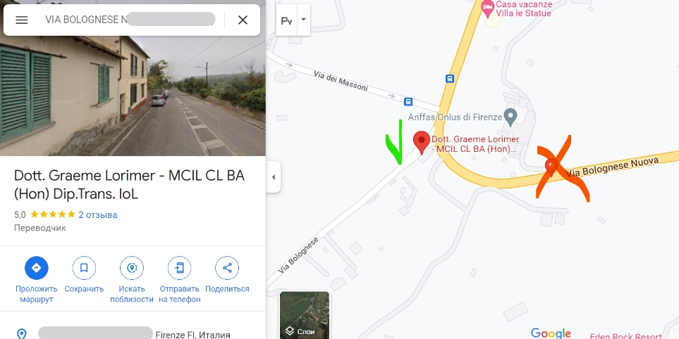 Далее остается найти нужный нам дом на картах Google. В нашем случае объект оказался чуть дальше, чем дал нам поиск по адресу. Но в некоторых случаях разница может быть довольно существенной.