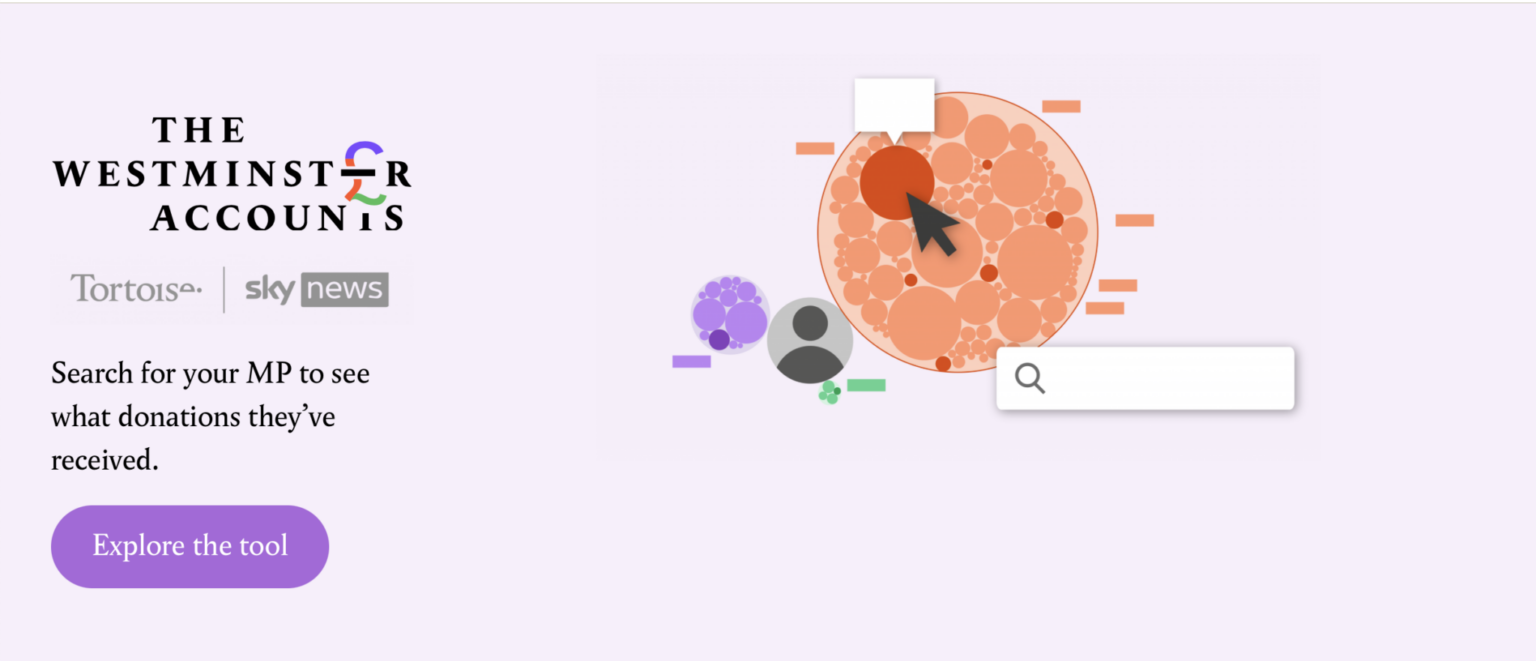 Недавно Tortoise Media и Sky News создали первую базу данных вторых мест работы, подарков и других пожертвований британским политикам под названием Westminster Accounts. В связи с особенностями законодательства в сфере декларирования активов в Соединённом Королевстве собирать данные о парламентариях раньше было очень непросто: приходилось перелопачивать многочисленные базы данных, поэтому денежные потоки в карманы политиков не всегда поддавались публичному контролю.